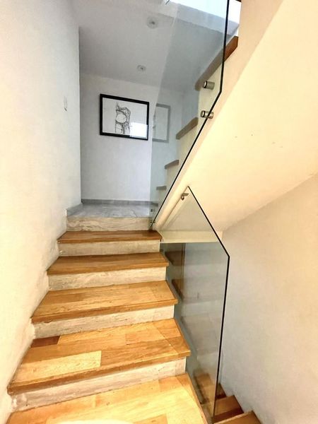 Se conforma de 3 niveles y un sótano. En el sótano se ubica el cuarto de servicio con baño completo, área de lavado amplia, patio y bodega, cuenta con estacionamiento para 3 autos.