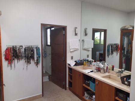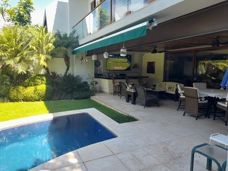 Excelente casa en condominio de 3 recamaras cada una con vestidor y baño, estacionamiento techado para dos autos, aire acondicionado en la recamara principal, carpinteria tzalam, sonido Bose en terraza, pisos de marmol, sala y comedor de doble altura, estudio, cuarto de servicio, terraza, alberca con calefacción, cocina integral, jardín.