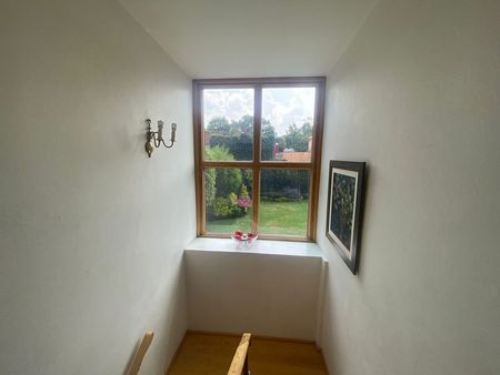 En la planta baja se encuentra un estudio que da al jardín así como la sala y comedor que también tienen acceso directo a una gran terraza de aproximadamente 120 m2 y al lindo y gran jardín de aproximadamente 300 m2 .