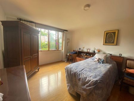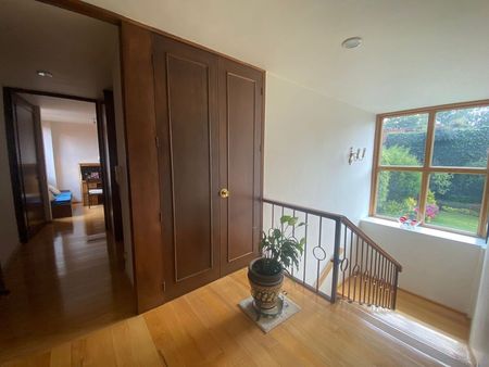 En la planta baja se encuentra un estudio que da al jardín así como la sala y comedor que también tienen acceso directo a una gran terraza de aproximadamente 120 m2 y al lindo y gran jardín de aproximadamente 300 m2 .