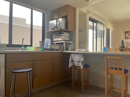 sala, comedor, cocina integral con barra desayunador, área de lavado, cuarto de servicio con baño completo, estudio con baño completo, lo cual puede ser una cuarta recámara