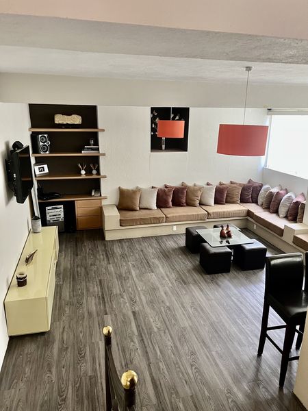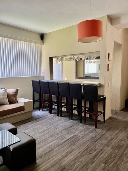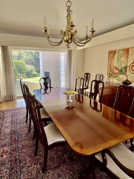 Cuenta con sala y comedor con vista directa al jardín, una terraza encantadora, family room, y una biblioteca privada con montacargas. La cocina es amplia, funcional y está acompañada por un pantry y una alacena de gran tamaño. Además, incluye una oficina privada, perfecta para trabajar desde casa.