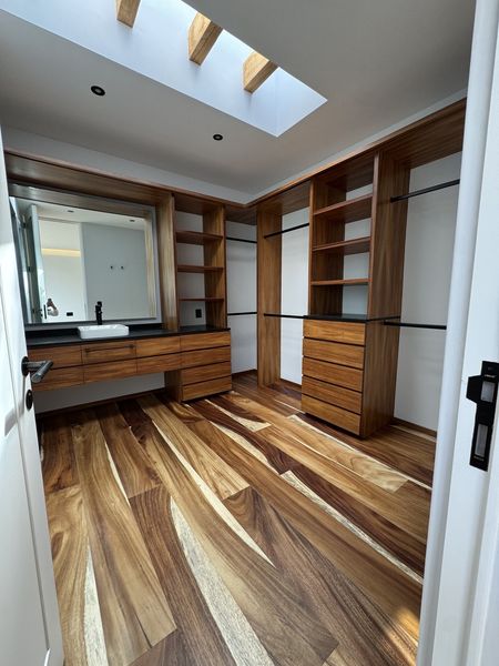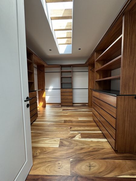 Carpintería en vestidores, construidas con bastidor de pino forrado en
