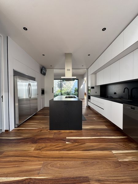 Cocina de ( Manzo studio), con equipos Smeg (parrilla, campana,
