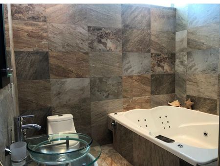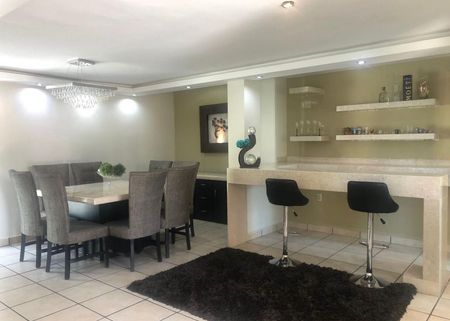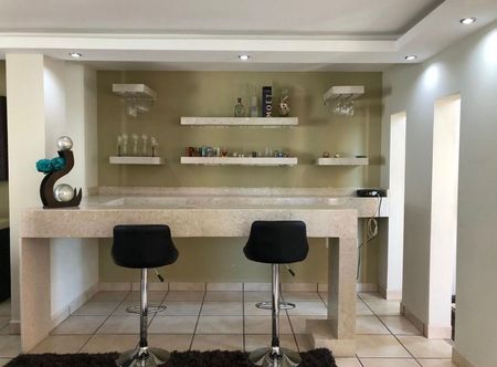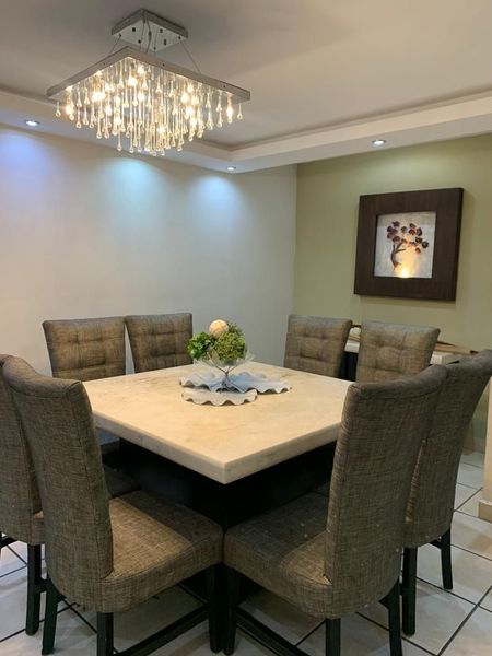 Sala, comedor, cocina equipada, cuarto de lavado, barra cantina de mármol, una recámara con baño completo en planta baja o Family