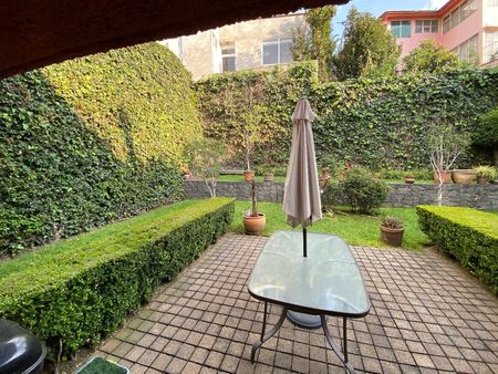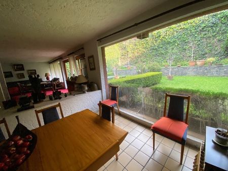 La planta baja es muy espaciosa está dividida en sala muy amplia, comedor y cocina con ventanales de piso a techo con vista a el precioso jardín. En planta baja aún los de la cocina se encuentra el cuarto de servicio grande en donde cabe una cama king size y tiene baño.