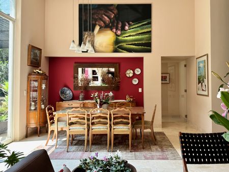 Casa desarrollada en 3 niveles, con excelente iluminación natural, espacios amplios, doble altura y elevador que conecta todos los niveles. Ideal para familias grandes o quienes requieren espacios independientes.