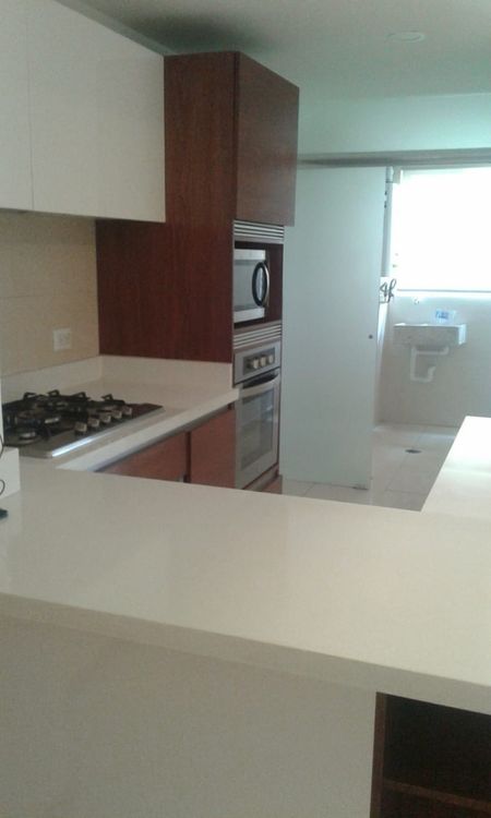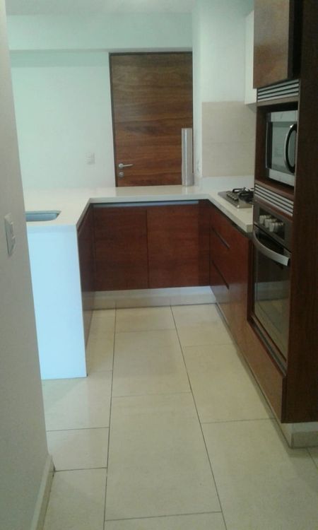Cocina equipada con barra y contiguo a ésta, el área de lavado. Tiene 2 estacionamientos fijos en sótano 5.