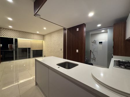 Cocina equipada con barra y contiguo a ésta, el área de lavado. Tiene 2 estacionamientos fijos en sótano 4 y bodega en sótano 2