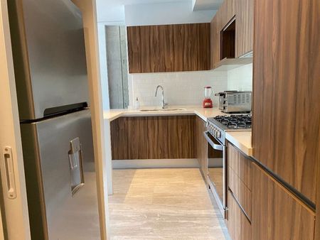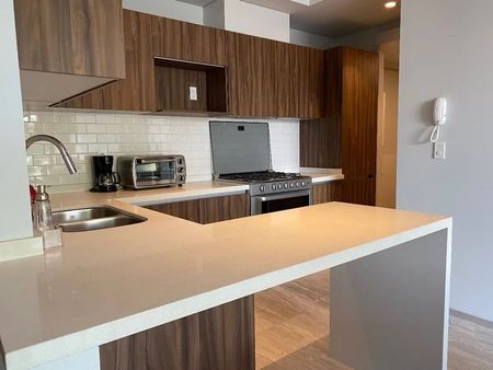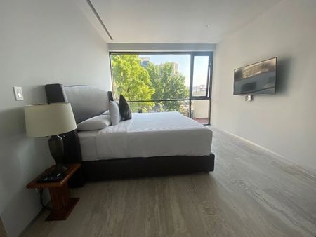 Ubicado en 5o piso con 106 m2 sala comedor con balcón de 5m2, cocina abierta con área de lavado, recámara principal con vestidor y baño, recámara secundaria con closet y baño compartido con área social, acabados de la más alta calidad, muy iluminado con hermosa vista exterior.