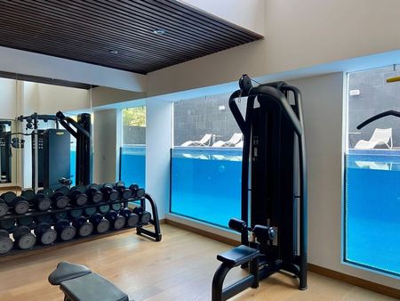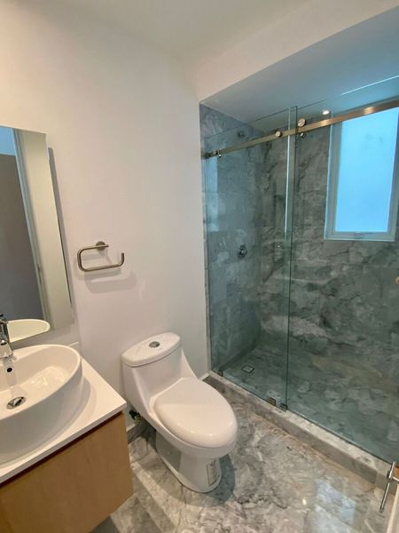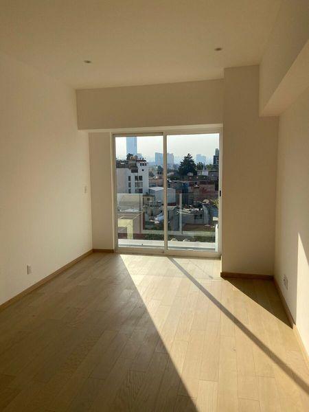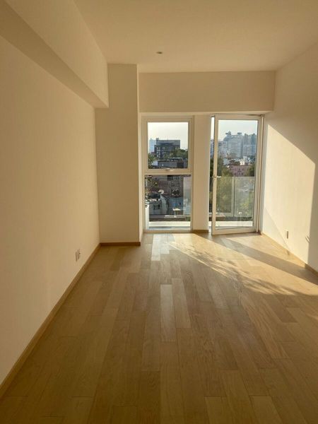 Se ubica en 5º piso, tiene 2 recamaras, 2 baños, prácticamente nuevo, 86 metros cuadrados, 2 estacionamientos completamente independientes y paralelos uno del otro (no elevautos), bodega, area de lavado, terraza amplia, exclusivas amenidades, concepto totalmente vanguardista. Ventanales de piso a techo que permiten excelente iluminación en todo el inmueble, con canceles de aluminio blanco y modernas persianas, pisos de madera de ingeniería, mármol en cocina y baños, altura de 2 m. amplia estancia sala/comedor. • cocina abierta equipada con barra-desayunador de cuarzo, muy amplia recámara principal con vestidor incluso para largos y zapatera deslizable, baño completo, ventanales de doble vidrio aislantes de ruido, recámara secundaria con closet, 2o. baño completo con ventilación natural que da servicio a recámara secundaria y estancia.