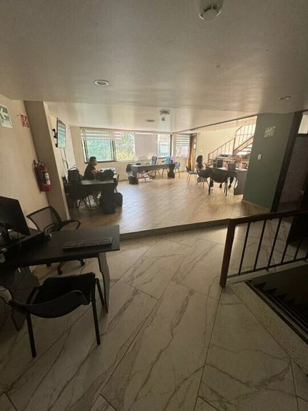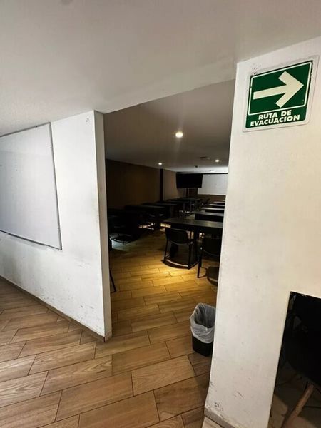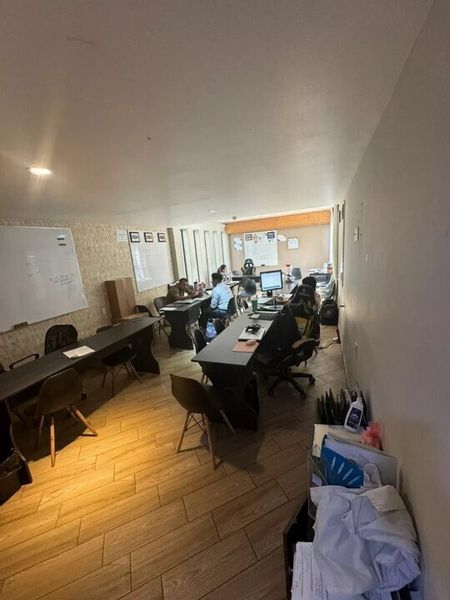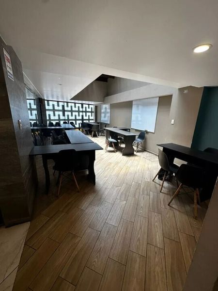 Al centro del área de las oficinas privadas hay un área para oficinas abiertas con un medio baño.