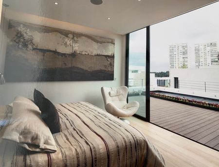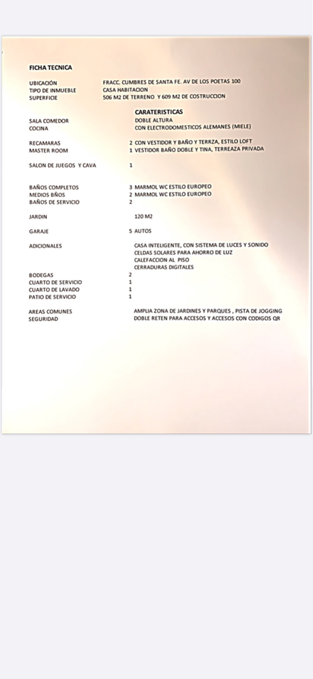 Hermosa y moderna Residencia en uno de los fraccionamientos más exclusivos y de gran plusvalía en la Ciudad de México denominado Cumbres de Santa Fé con grandes jardines, pista de jogging, cancha de fútbol, parque con juegos infantiles y un estricto sistema de seguridad de acceso con códigos QR y doble retén.