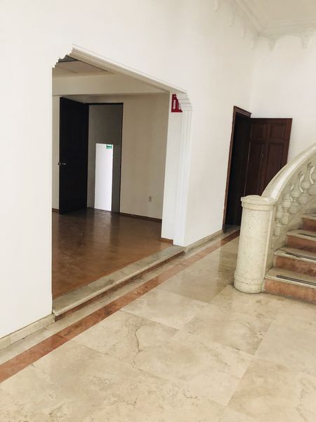 A0154.Espectacular Casa con Uso de Suelo para Oficinas y Uso Comercial, Embajadas, Casa de Cultura, Academias, etc. La casa tiene dos plantas, cuenta con dos bóvedas de Banco para valores, tiene amplias instalaciones sanitarias para damas y caballeros en planta alta y planta baja (total 12 sanitarios), además de Sanitario Privado para el Director General, cuenta con un departamento adicional para el vigilante, totalmente alfombrada y con piso de madera, doble escalera de acceso espectacular de mármol con 2 halles con piso de mármol. Se ubican 25 lugares de estacionamiento sin estorbar (cada uno con su cajón independiente); más 40 autos estorbándose.