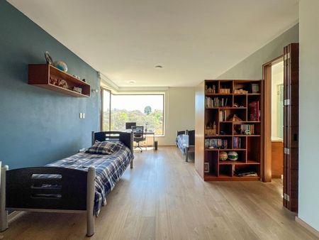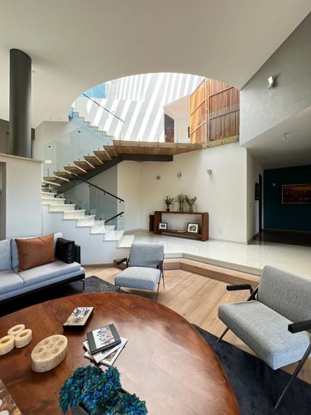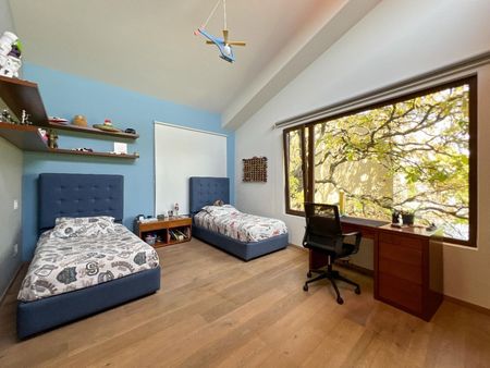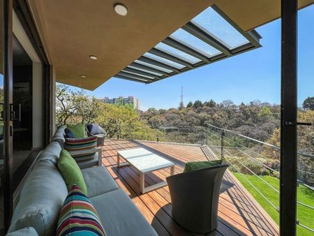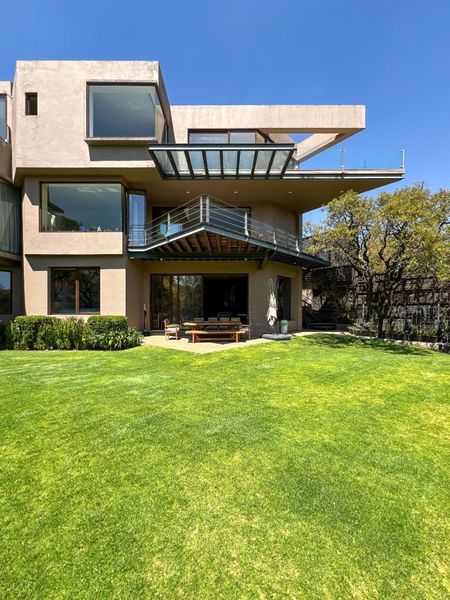 Preciosa casa diseñada por Mariangel Coghlan en Cumbres de Santa Fe, con excelentes acabados. Tiene de terreno 1,120 m2 y construcción de 1,000 m2 distribuidos en 5 recámaras, 5.5 baños, 9 estacionamientos, cuarto de servicio, terraza, hermoso jardín y cocina integral. Fraccionamiento privado con seguridad 24 hrs y acción de club de cumbres Santa Fe.