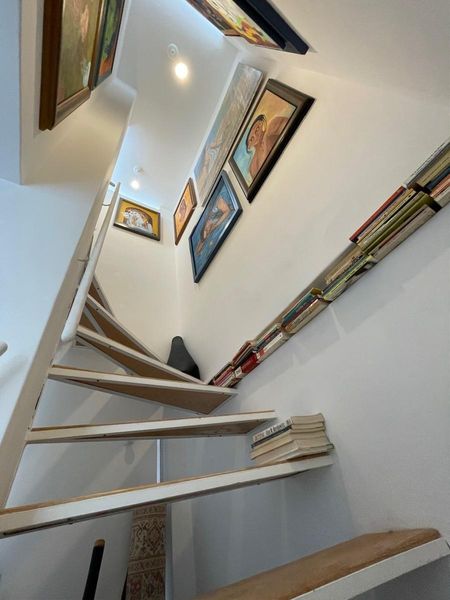 Hay otras escaleras en área común que suben desde la planta baja al cuarto piso de terraza y un pequeño baño de servicio.