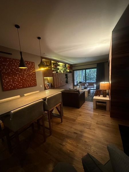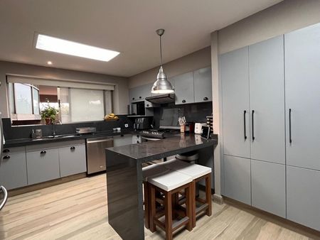 Vive el lujo y la exclusividad en Dos Vistas, en la Loma de Santa Fe. Increíble pentgarden único combina amplios espacios interiores con un entorno natural privilegiado, ideal para disfrutar con la familia y amigos. Cuenta con 3 recamaras cada una con vestidor y baño completo; espacios de sala y comedor amplios con acceso a una terraza espectacular con área de asador; medio baño de visitas; family room; cocina integral equipada de gran tamaño; área de lavandería y cuarto de servicio. Todo el departamento cuenta con calefacción hidronica para máximo confort y ventanas con doble vidrio; además de acabados y materiales de lujo en todo el departamento. 4 lugares de estacionamiento y bodega.