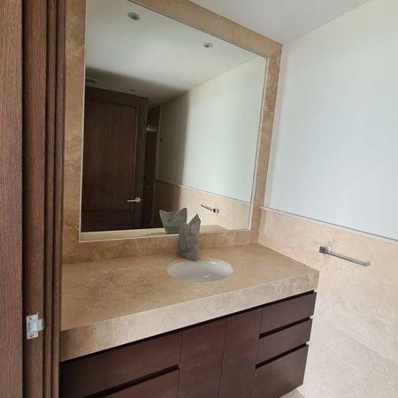 El departamento se entrega sin pisos. Únicamente los baños y la cocina los tienen