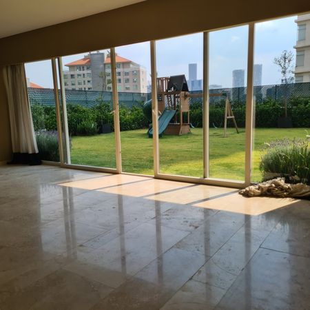 El departamento se entrega sin pisos, unicamente la cocina y los baños tiene vale muchísimo la pena! Visitalo!!!!