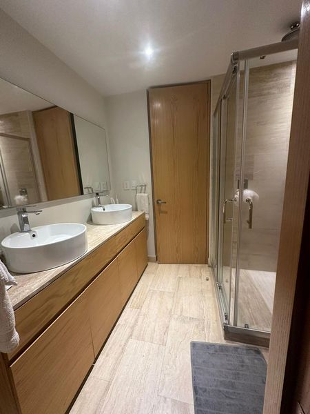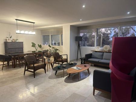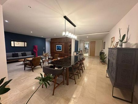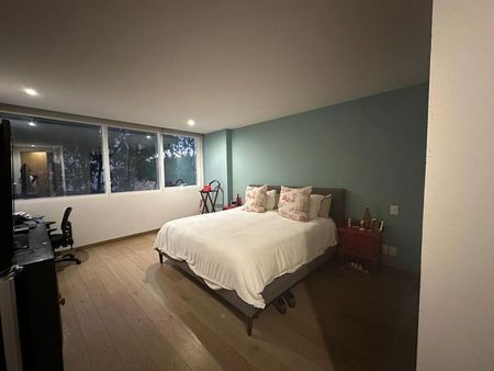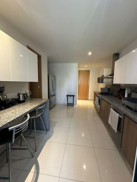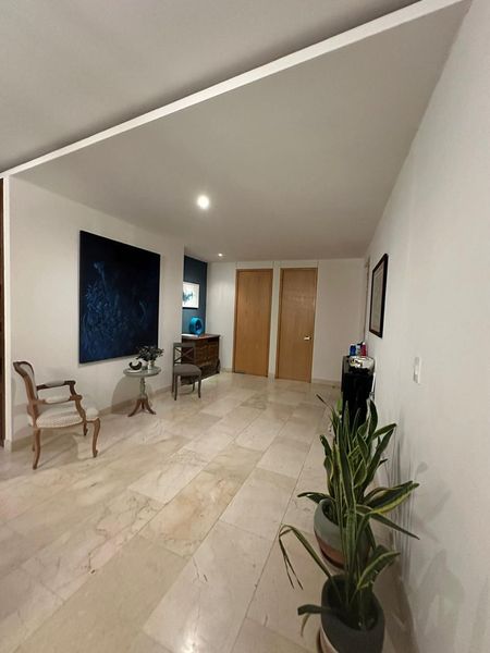 Este increíble departamento cuenta con 3 recamaras cada una con baño completo, la recamara principal y una de las secundarias con vestidor, la segunda recamara secundaria con closet; espacio de sala y comedor muy amplio con hermosa vista arbolada; family room; baño de visitas; cocina integral equipada de buen tamaño; área de lavandería; cuarto de servicio. 3 lugares de estacionamiento y bodega. Todo el departamento cuenta con amplios espacios, acabados de primera calidad y una distribución funcional que ofrece confort y privacidad.