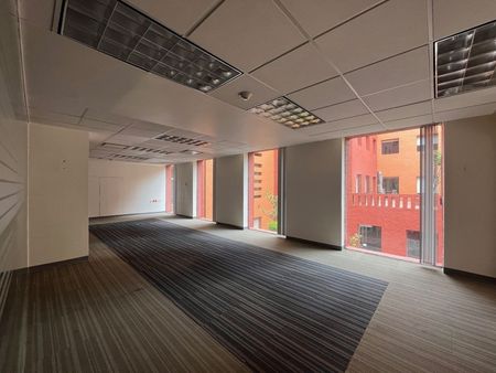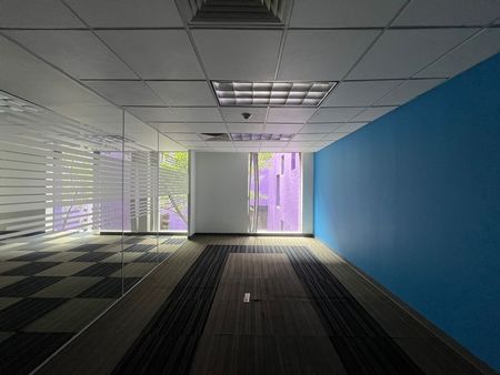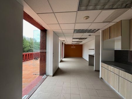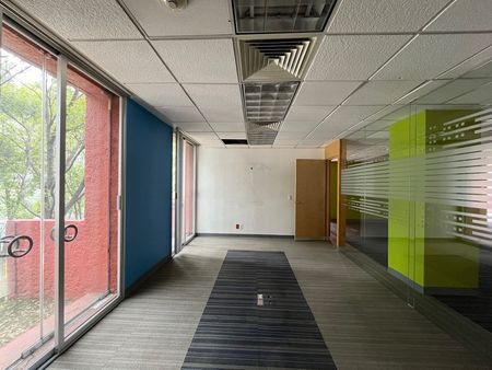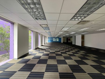 Oficina ACONDICIONADA en un corporativo de solo 5 pisos en Santa Fe con excelente seguridad y rodeada de jardines. Tiene 4 sótanos de estacionamientos, 6 elevadores más un montacarga.