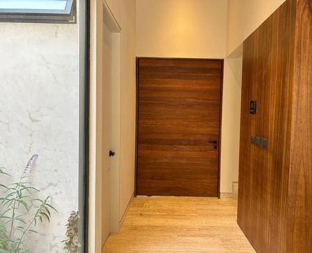 las carpinterías de puertas y vestidores, y los muros con acabado aparente