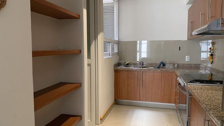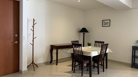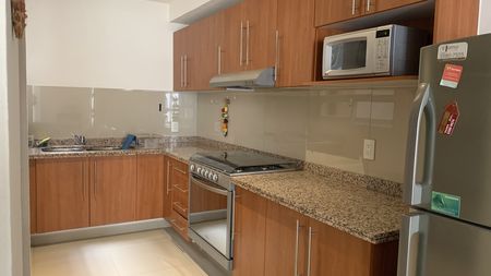Depto con mucha luz, piso 14 Torre Luna con superficie de 100m y techos altos, sala comedor y cocina abierta de muy buen tamaño, área pequeña de lavanderia con fregadero y centro de lavado. 2 recámaras la segunda con su baño fuera y la principal con baño (con tina) dentro de la recámara y un vestidor muy amplio y alto. tiene 2 estacionamientos muy cercanos a la salida y solo se sube medio nivel. El depto esta super cuidado y en perfecto estado. Listo para entrar quien lo compre.