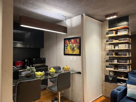 Estratégicamente ubicado, este encantador loft estilo neoyorquino en el segundo piso de un pequeño edificio de tan sólo 6 departamentos es ideal para una persona soltera o pareja. A pasos de Pabellón Bosques y comodísima distancia de la Anáhuac, Ibero,Tec, Santa Fe, Interlomas y claro, Arcos Bosques. Magníficamente aprovechados todos los espacios, cuenta con una recámara, amplio baño, cocina, barra y family. Totalmente eléctrico, el agua se incluye en el mantenimiento, por lo que los únicos servicios a pagar son luz e internet. Elevador de autos directamente al piso ¡Excelente inversión!