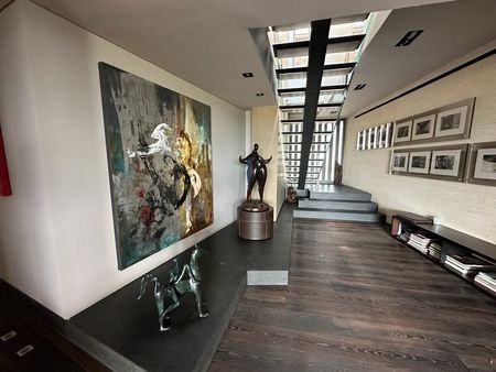 En el primer piso está todo el departamento, sala, comedor, recámaras, baños, cuarto de servicio etc. y el segundo tiene un bar, una sala y una espectacular terraza de 360 grados además de la terraza donde cabe un asador y la mesa para 8 personas. Cuenta también con otro baño de visitas o medio baño para no bajar al depto.