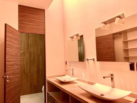 Recibidor a doble altura, sala comedor con vista al jardín, bar, estudio o cuarta recámara.