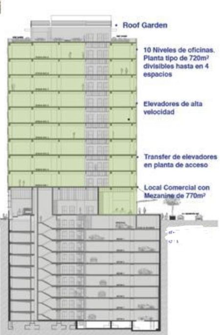 Las plantas de 720m2 se pueden dividir hasta en 4 partes. Se entregan en obra gris lista a para acondicionarse a sus necesidades. Conózcalas. La renta es desde $24 dólares el m2 y mantenimiento de $70 pesos por m2, ambos más IVA