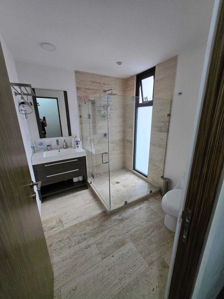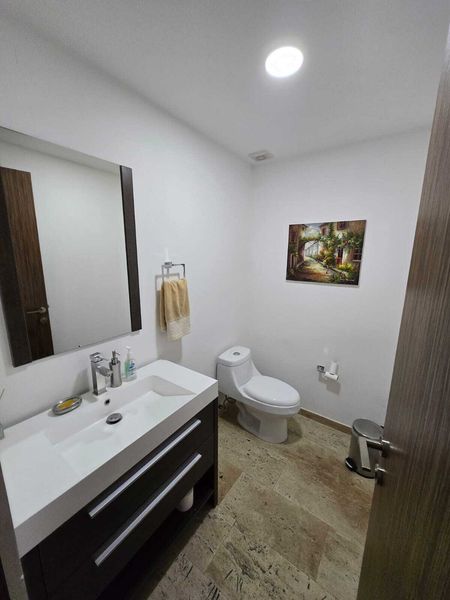 CUENTA CON AMPLIA E ILUMINADA SALA COMEDOR CON BALCÓN, MEDIO BAÑO DE VISITAS, COCINA INTEGRAL CON BARRA DE GRANITO ABIERTA HACIA LA ESTANCIA, AREA DE LAVADO.