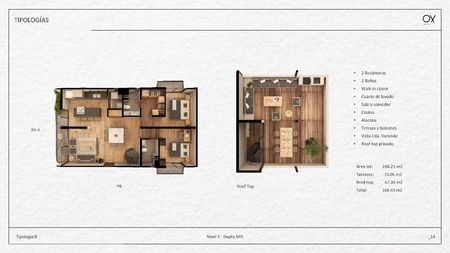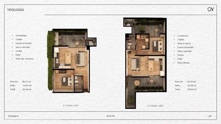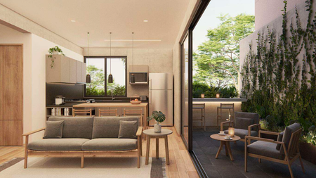 • Departamentos de 1 y 2 recámaras con espectaculares patios.