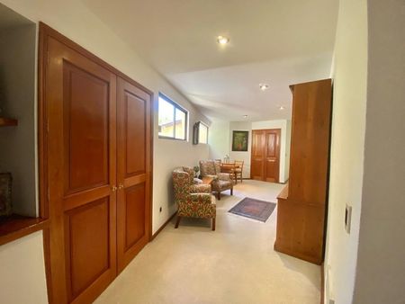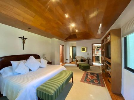 3 habitaciones ( principal con techo de madera ), 4 Baños y un medio baño. Jacuzzi y Vapor.