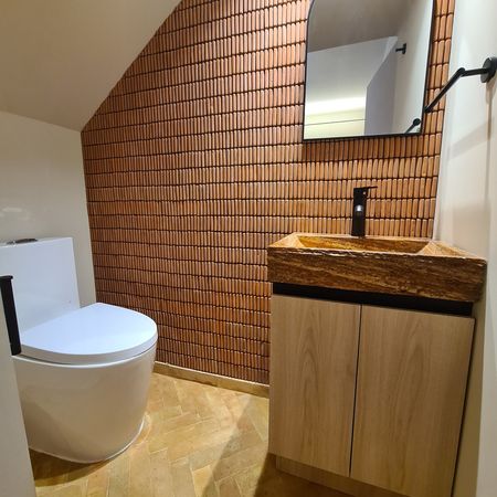 Cuenta con un roof top de 95m con baño y barra para asador, al que se accede desde el patio de PB.