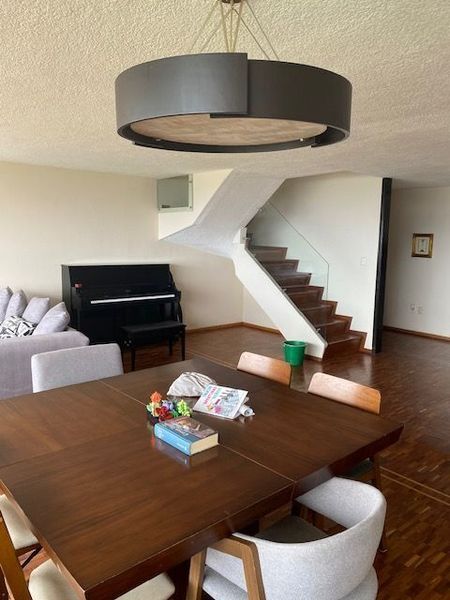Se vende Penthouse enfrente del parque Acacias (Del Valle Sur). Tiene 300 m2 de superficie en 2 niveles. 3 recamaras, 2.5 baños, cocina con desayunador, área de servicio con lavandería, bodega. Amplia estancia con elevador a la puerta, se encuentra en el piso 11. En el segundo nivel tiene un espacio muy amplio, un baño completo, bodega y una terraza de todo el frente del departamento, 2 lugares de estacionamiento, vigilancia 24/7, son 22 departamentos, gas natural.