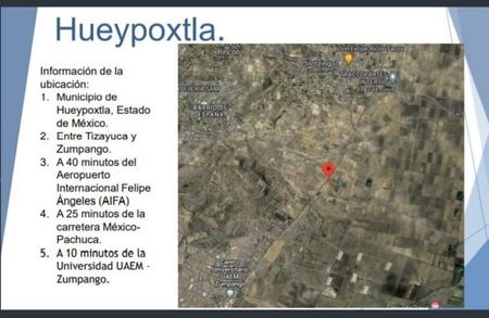 UBICACIÓN :TERRENOS TERRENOS CERCANOS AL AIFA , AEROPUERTO INTERNACIONAL FELIPE ÁNGELES. LOS CUALES SE CONJUNTAN EN EL MUNICIPIO DE HUEYPOXTLA.