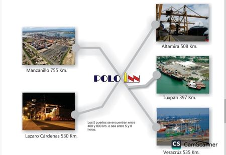 * Conectividad por carretera con los Puertos de Lázaro Cárdenas, Manzanillo, Altamira, Tuxpan y Veracruz.