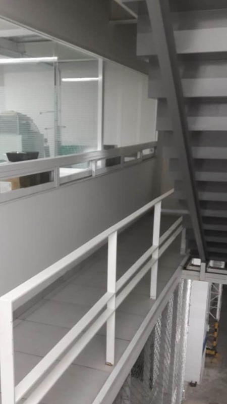 Tiene en su interior un edificio de dos pisos de oficinas modernas amuebladas. En el
