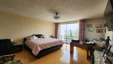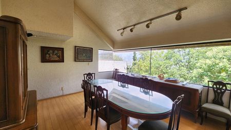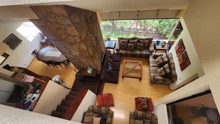 398 m2 distribuidos 3 niveles; en total son 5 recámaras, 3 con vestidor y baño en planta alta y otras 2 recámaras en planta baja que comparten baño con salida al jardín.