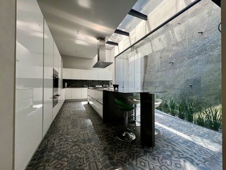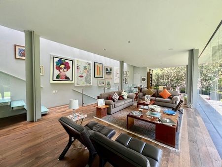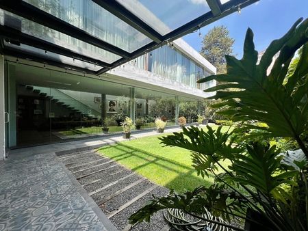 Esta lujosa casa ubicada en calle cerrada con vigilancia las 24 horas ofrece seguridad para sus residentes. Está propiedad cuenta con un elevador que facilita el acceso a todas las plantas de la casa El amplio jardín es el lugar perfecto para disfrutar con la familia y amigos. La impresionante cocina con pantry tiene acabados de alta calidad como porcelanato italiano y los mejores electrodomésticos .Los acabados como los pisos de mármol y madera de nogal, se extienden por toda la casa. Cuenta con un sistema de sonido integrado y una iluminación ambiental que crea un ambiente acogedor. Con 4 recámaras la principal con dos walking closets y 2 baños completos, las tres recámaras cuentan con walking, closets y baño completo. Consta de leaving room , gimnasio, 1 baño de visitas, 2 cuartos de servicio, cuarto y baño completo de chofer y estacionamiento techado para 6 autos y tres bodegas Está propiedad ofrece comodidad y lujo en cada detalle. Está casa es el sueño de cualquier persona que busque un estilo de vida elegante y sofisticada.