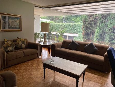 Excelente casa en un solo piso con muchisima luz, la distribución es perfecta, son 867 m2t y 445 C, tres recamaras cada una con baño y vestidor, family room, oficina o despacho, sala, comedor, cocina integral, antecomedor, hermoso jardín, area de lavado y de servicio, lugar para 9 autos. Cuenta con cisterna y fosa séptica. A 200 metros de encuentra la iglesia del Pedregal y muy cerca Artz y centros comerciales .