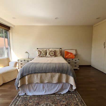 Se vende casa en Tecamachalco construida prácticamente en 1 piso, lo que la hace miy funcional. A nivel calle tenemos área social y familiar. Un piso abajo está el estacionamiento y un cuarto de juegos. Un piso arriba está el área de servicio con 2 cuartos, 1 baño, un área para tender y un taller/estudio