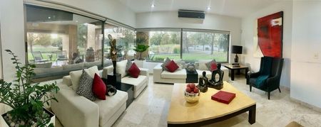 Hermosa residencia en exclusivo fraccionamiento en Morelos, con estricto control de acceso, campo de golf y casa Club, que cuenta con gimnasio, canchas de tenis, spa, alberca semiolímpica climatizada, baños, vestidores, restaurant, cafetería y bar.
