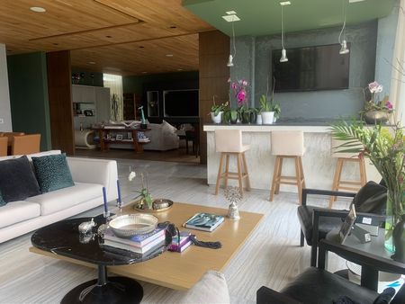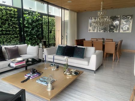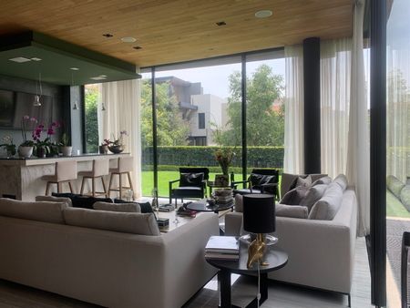Hermosa y moderna Residencia en uno de los fraccionamientos más exclusivos y de gran plusvalía en la Ciudad de México denominado Cumbres de Santa Fé con grandes jardines, pista de jogging, cancha de fútbol, parque con juegos infantiles y un estricto sistema de seguridad de acceso con códigos QR y doble retén.