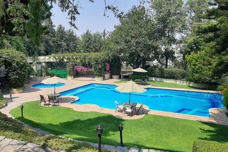 - 6 recámaras con baño, vestidor y aire acondicionado, la principal master suite en planta baja con sala de TV, enorme vestidor de 2 pisos, 2 baños separados y regadera, jacuzzi, sauna, vapor y jardín privado